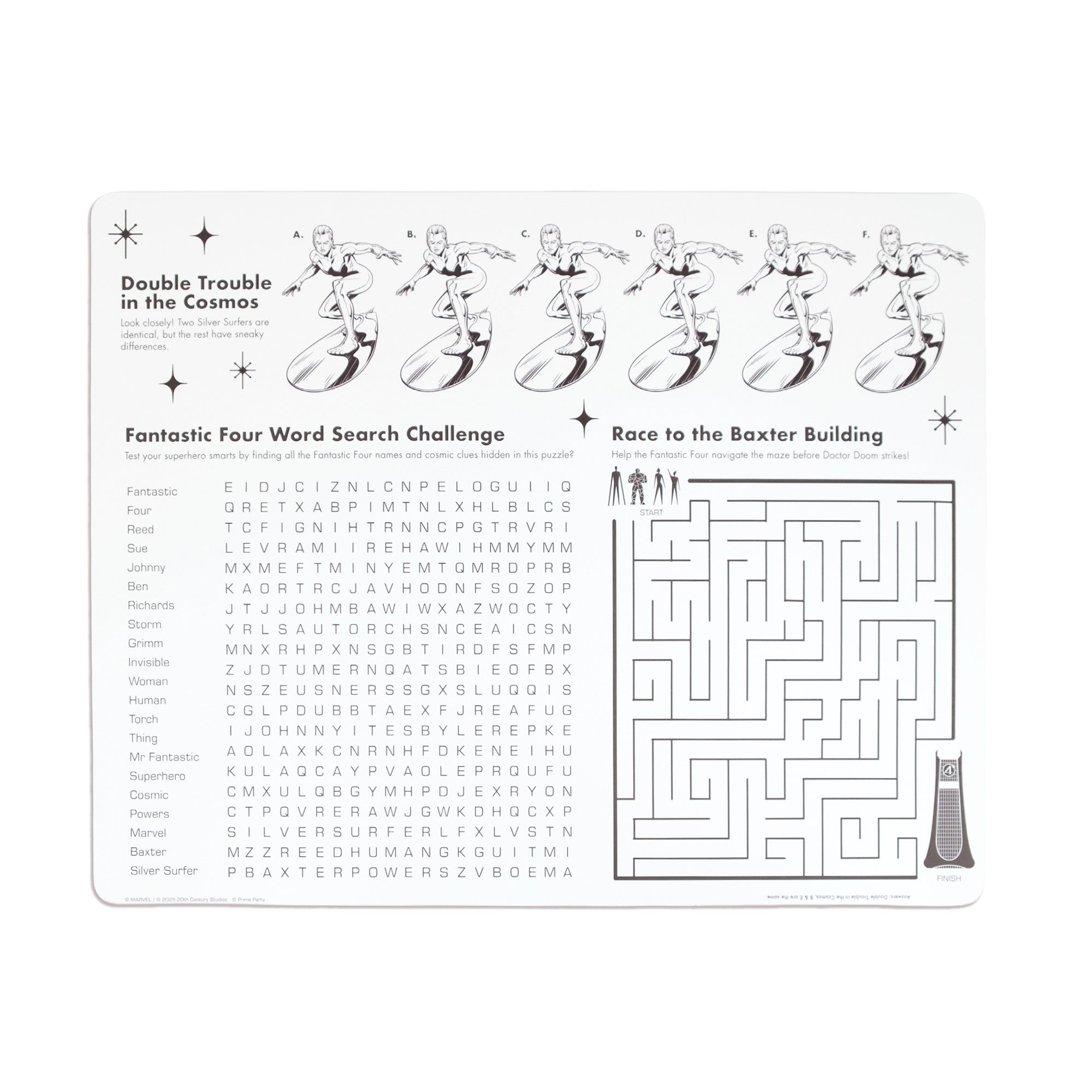 Fantastic 4 Placemats (Pack of 8) protect tables from spills and messes. The disposable design makes cleanup easy. Great for meals, crafts, or themed settings.