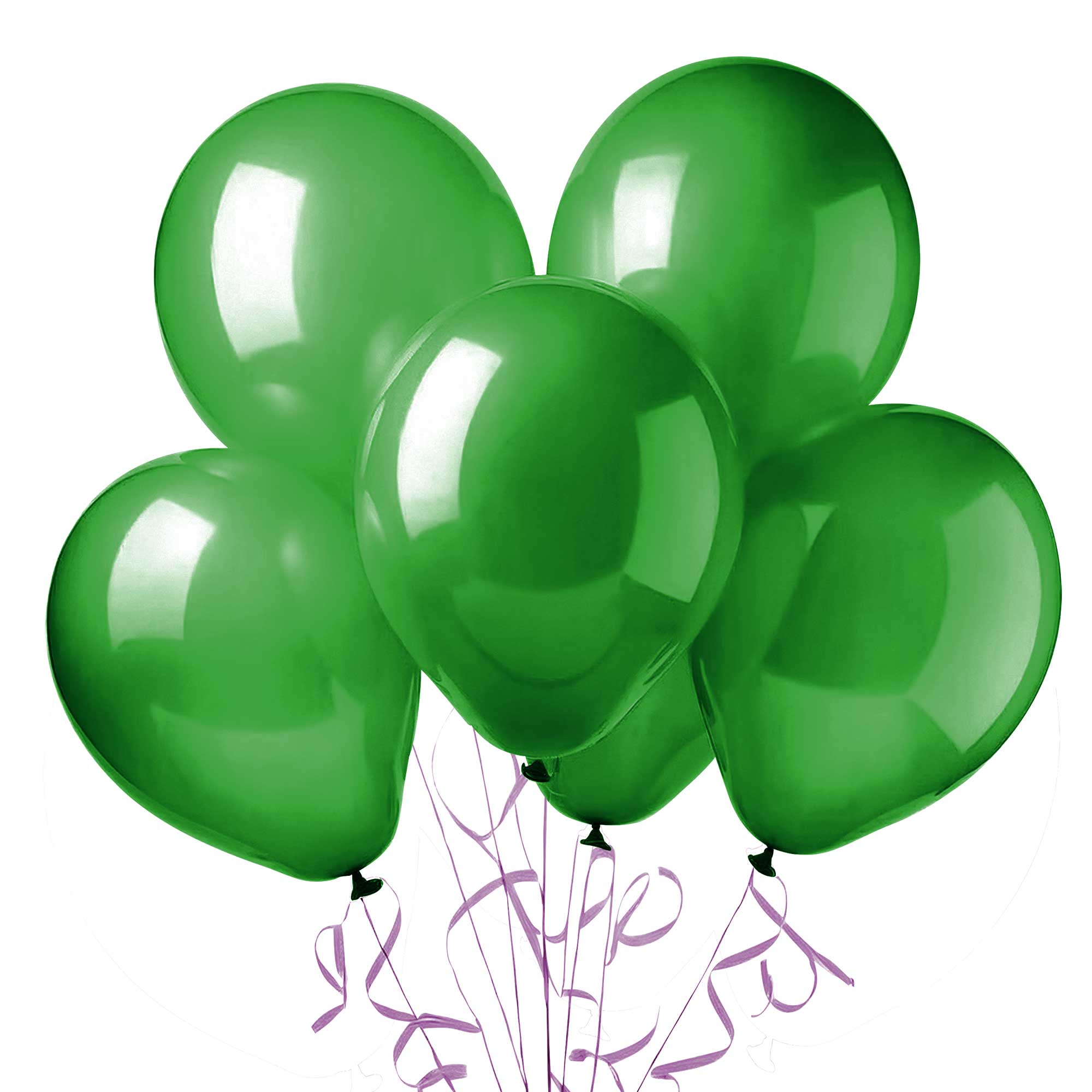 Green latex balloons for festive decorations at birthdays, weddings, and special occasions.