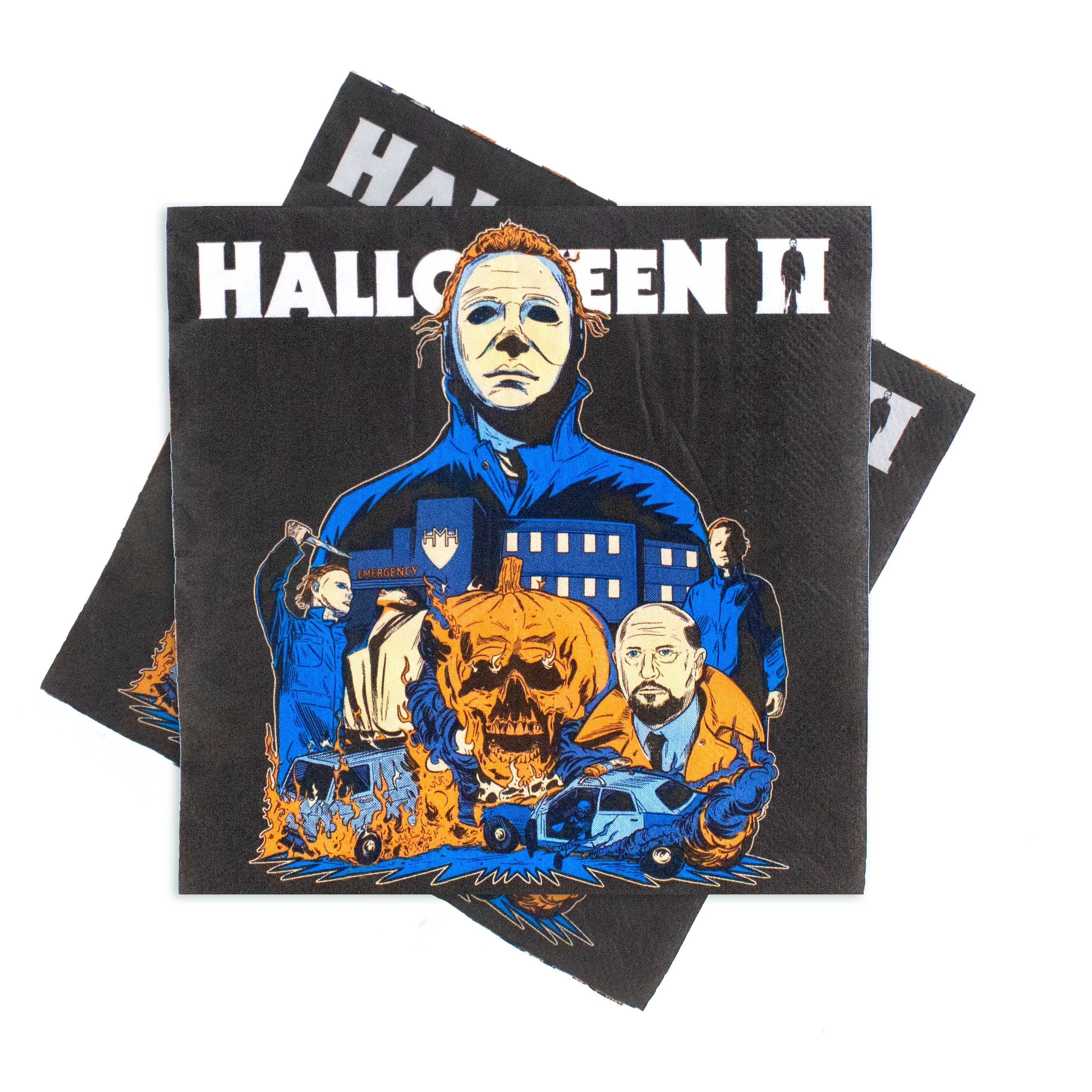 Set a chilling scene at your party with these officially licensed Halloween II lunch napkins. Featuring bold, full-color artwork of Michael Myers and iconic imagery from the classic horror film, these napkins are both decorative and practical. Made of durable 3-ply paper, they’re strong enough for mealtime messes while adding an unforgettable touch of horror to your table. Each pack includes 16 napkins.