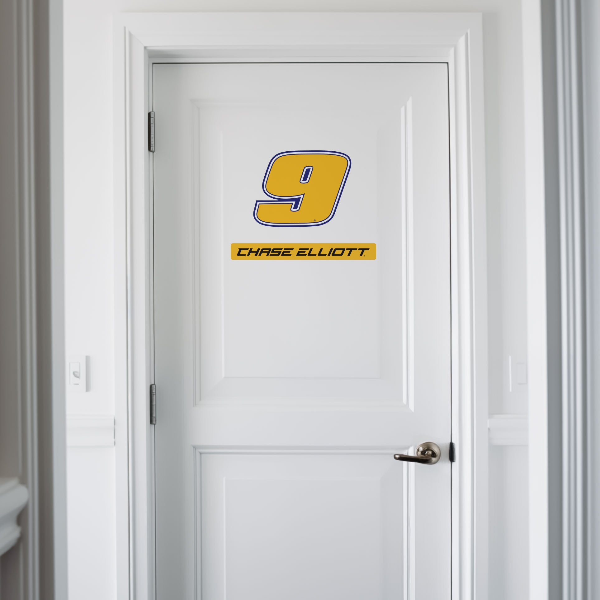 This decal set includes: • 1 giant Chase Elliott wall decal featuring his image, car, number, and autograph • 1 vibrant "#9" number decal • 1 themed light switch cover decal • Official Hendrick Motorsports and NASCAR logo decals