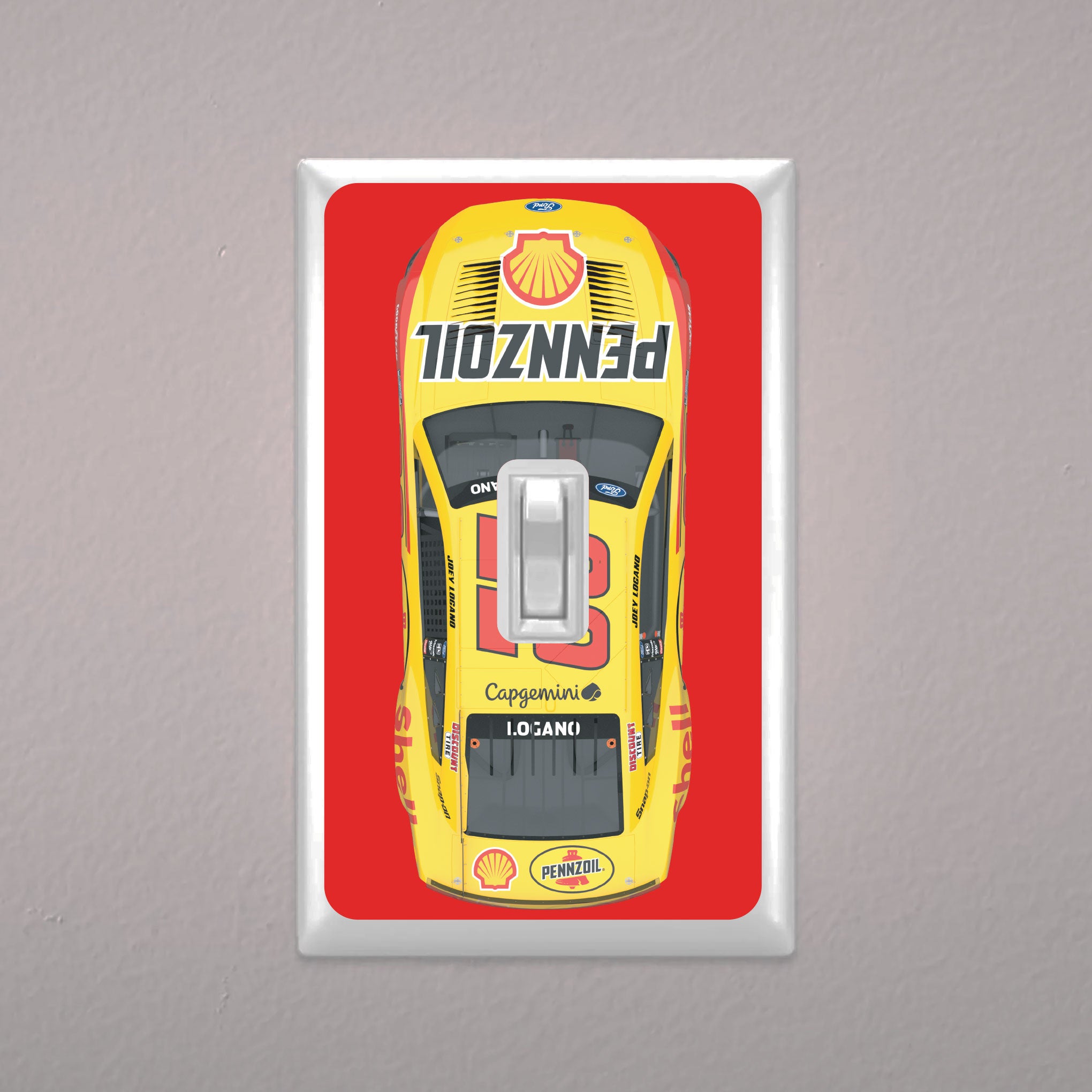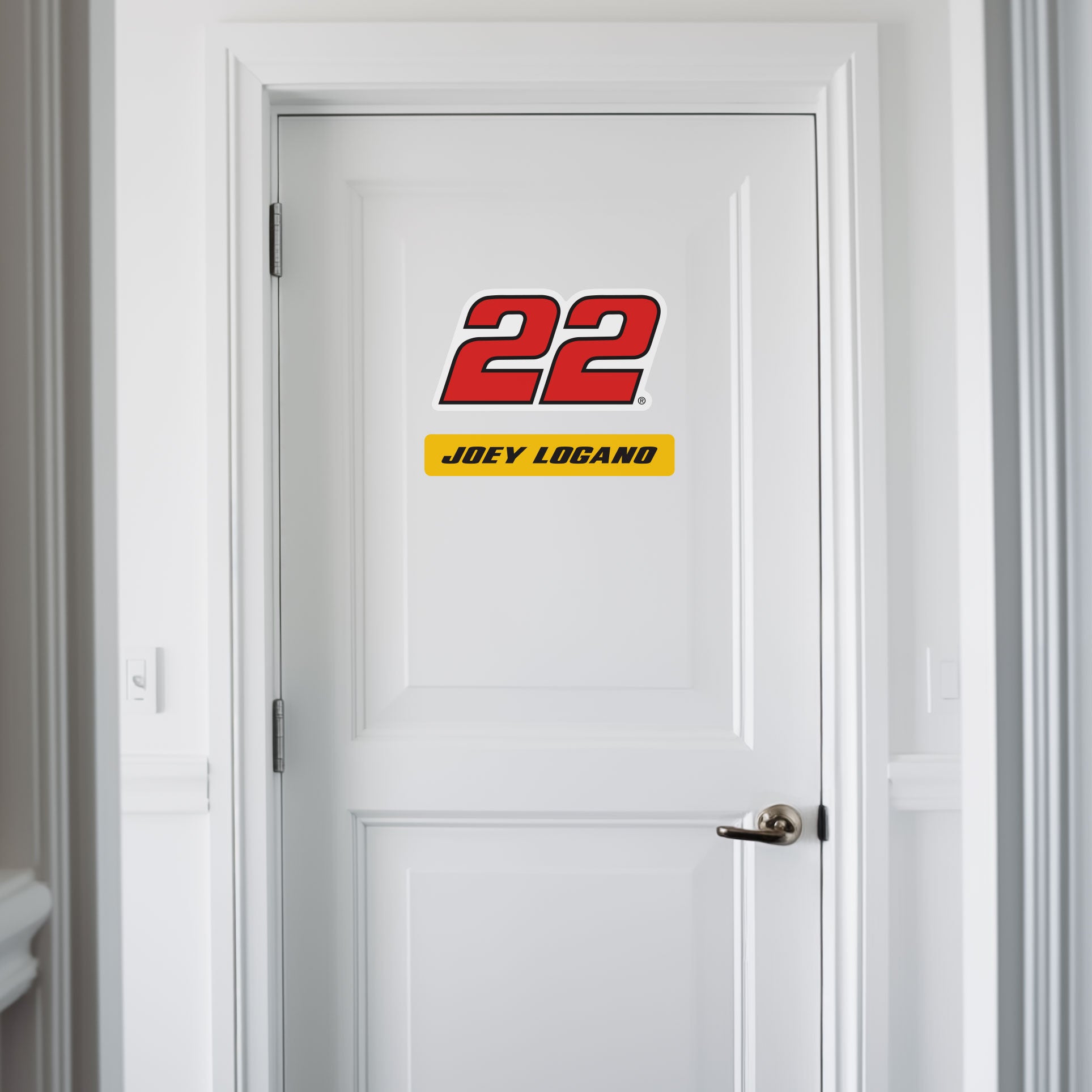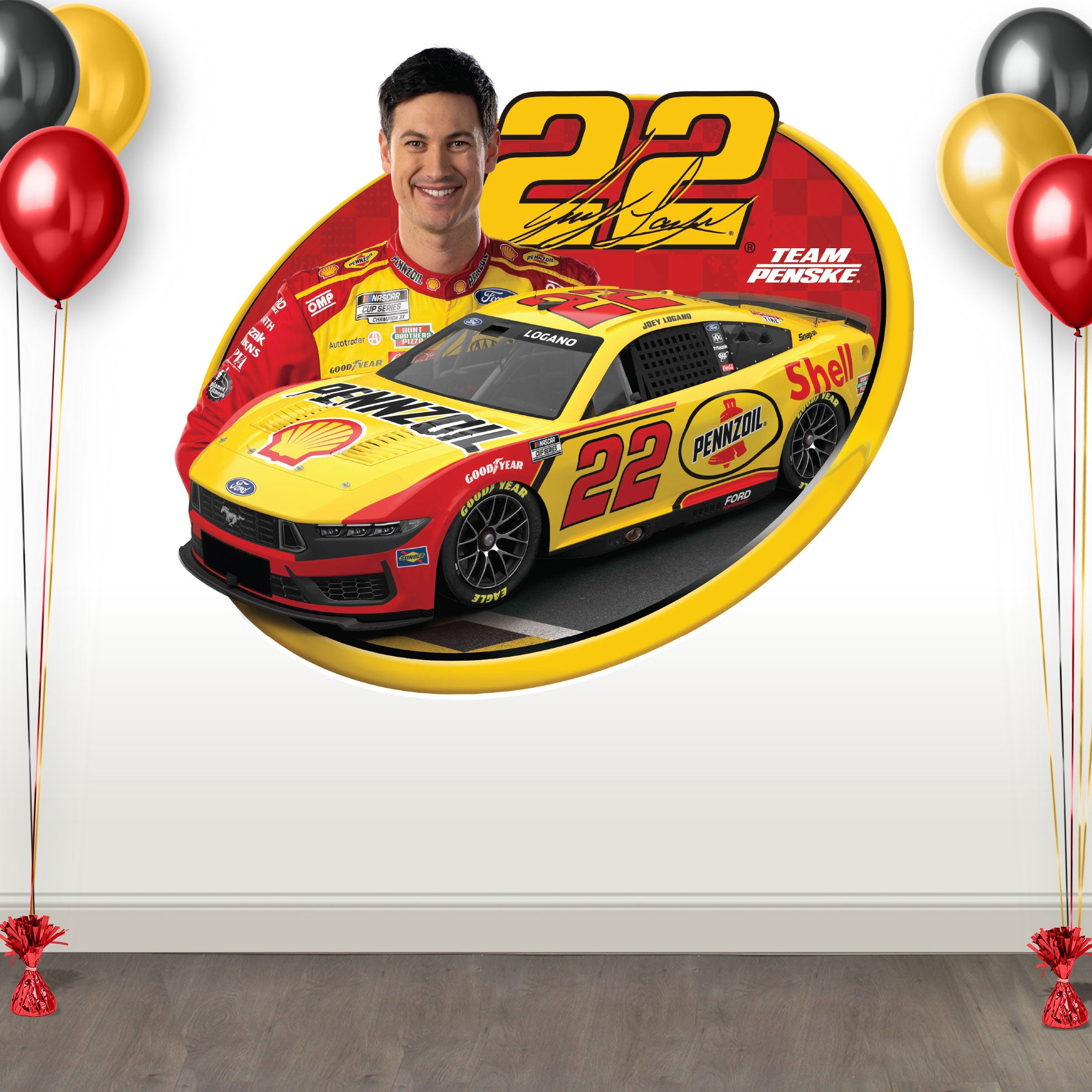 Set includes: • 1 oversized Joey Logano decal featuring his photo, car, signature, and number • 1 bold "#22" number decal • 1 themed light switch cover decal • Additional NASCAR and Team Penske logos